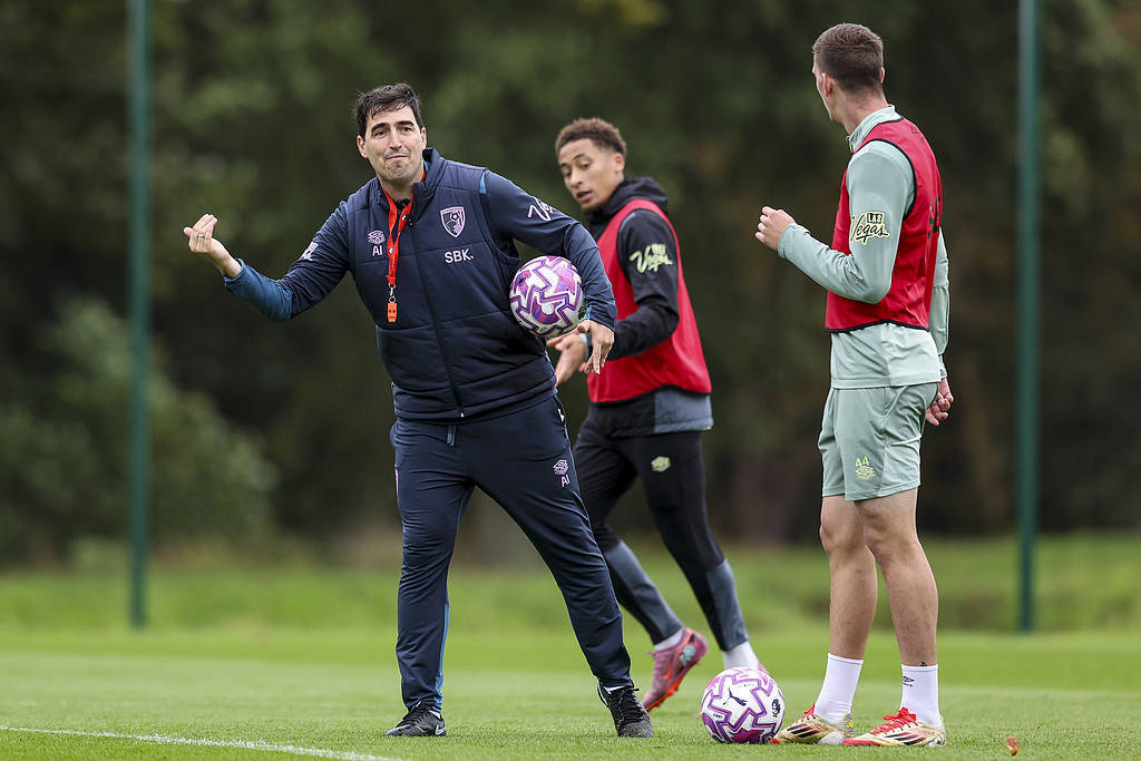 伯恩茅斯主帅伊劳拉(左)指导训练。